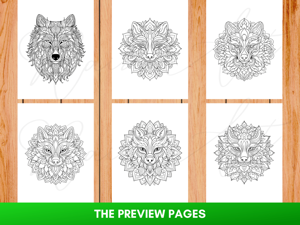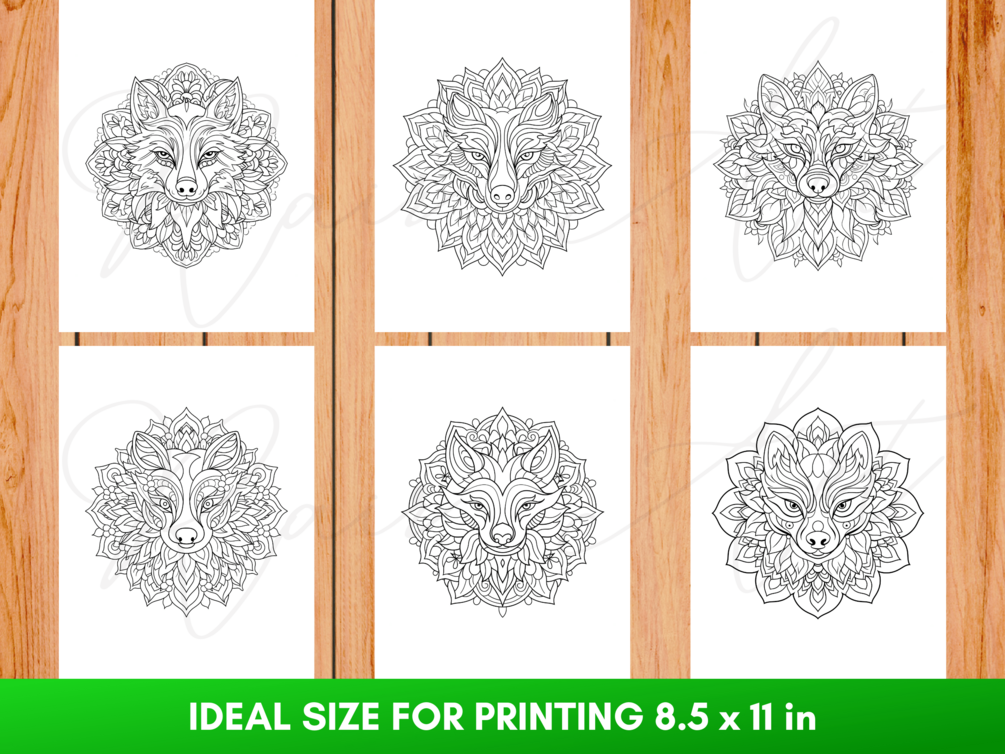 Libro para colorear mandalas de lobos: 40 páginas para colorear para niños y adultos, imprimible PDF + PNG, descarga instantánea